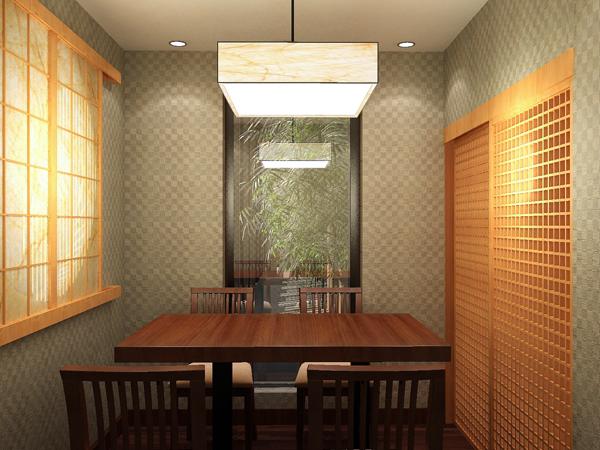 在中国北京连锁开店的日本料理店设计计划。在空间构成上使用了具有异域风情的日本空间。利用现有的高天化,在店里布置错落的屋群,营造出一种日本房舍的氛围。