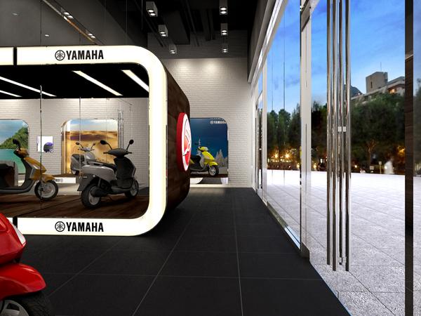 在中国全境开展的摩托车店标准设计计划。本设计融入了该品牌所具有的的先进性、紧密性的光环装饰,还使用木质素材包裹光环整体,产生适度的柔和感与情切感。
